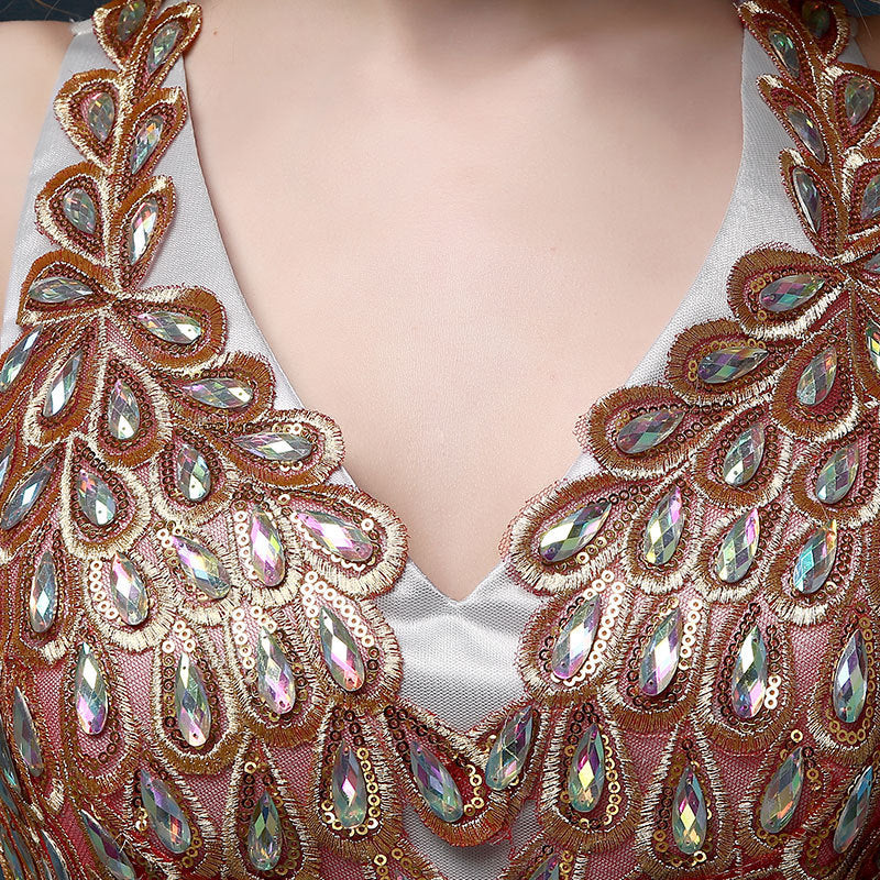Wedding dress style; deep V-neck